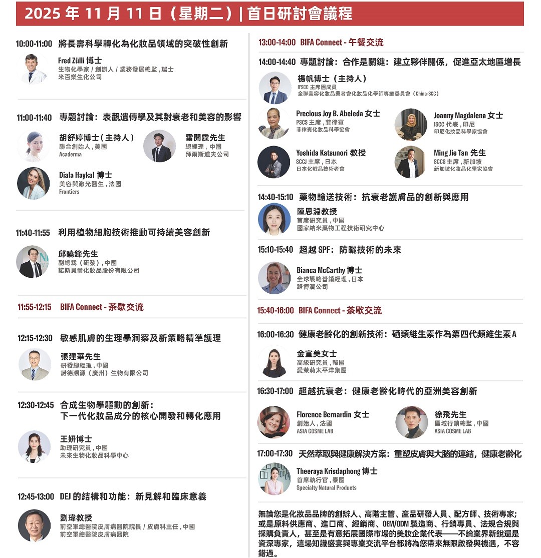 歡迎參加首屆亞洲化妝品原料配方論壇暨展會 (BIFA) —— 一個融合科學研討會與商貿合作的獨特盛會,將於2025年11月11日至12日在香港亞洲國際博覽館舉行。